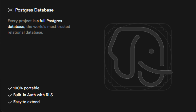 每個 Supabase 專案都是一個完整的 PostgreSQL 資料庫,不被特定廠商綁架,支援 SQL 完整功能及多種擴充外掛。