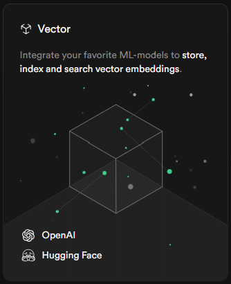 整合 Vector 向量工具,支援儲存、索引與搜索向量嵌入(Vector Embeddings)。完美對接 OpenAI 與 Hugging Face 模型,是開發 AI 驅動應用的最佳選擇。